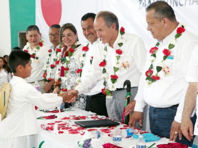 El presidente municipal, Baldemar Orta López, reconoció que en el actual sexenio, se ha transformado el sector educativo. Tan solo en el municipio, se han triplicado los desayunos escolares y la inversión para mejorar los planteles superó los 220 millones de pesos. En su turno, el dirigente de la sección 26 del magisterio, Alejo Rivera Ãvila, destacó los apoyos a planteles y alumnos de educación indÃgena. Mencionó que se aplican más de 380 millones de pesos en mil 148 obras para rehabilitar, construir y equipar 563 planteles, lo que representa el 64% de escuelas beneficiadas.