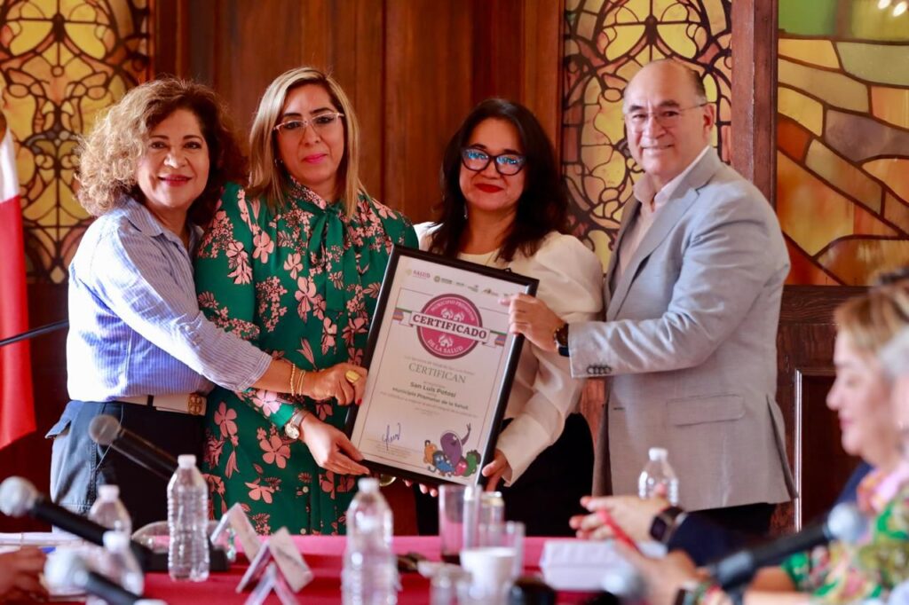 El Ayuntamiento de San Luis Potosí recibió este viernes la certificación como Municipio Promotor de la Salud por los Servicios de Salud del Estado de San Luis Potosí, en reconocimiento por el compromiso del Gobierno Municipal en impulsar la salud y mejorar la calidad de vida de las y los potosinos. Durante la ceremonia de entrega, el Alcalde Enrique Galindo Ceballos destacó que este logro es fruto de un trabajo coordinado entre las diversas áreas del Ayuntamiento y la colaboración con la comunidad; además de las acciones del programa La Ruta de la Salud, con el que se han otorgado servicios médicos de calidad y se han entregado lentes, auxiliares auditivos y equipo técnico funcional a habitantes de las colonias y zonas rurales de SLP.