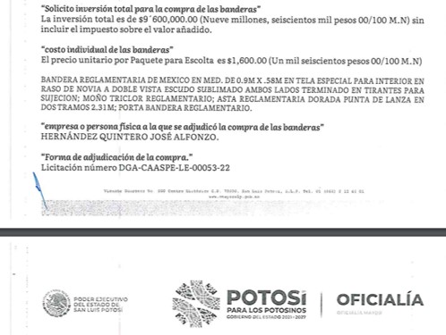 Gallardo Cardona y Torres Cedillo, dilapidan más de 9 millones de pesos, en la compra banderas patrias