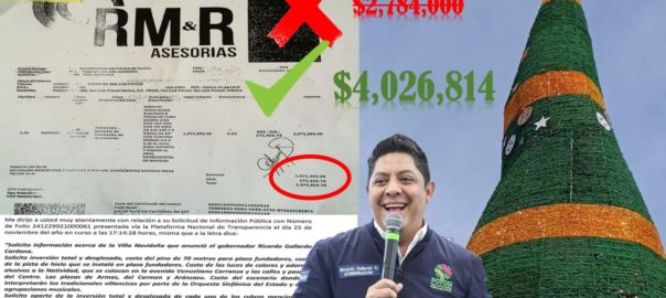 El millón 242 mil 814.9 pesos erogados en RM y R AsesorÃas, más los 2 millones 784 mil pesos pagados a Sandra Guadalupe Neyoy Ahumada, por concepto de árbol y estrella led, la instancia estatal cubrió un total de 4 millones 26 mil 814.79 pesos. Se infiere que la firma responsable del fracaso es RM y R AsesorÃas, no Sandra Neyoy, a la que se culpó en público de los desperfectos.